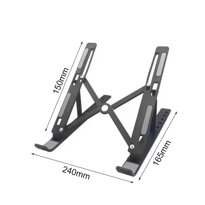 This sleek aluminum laptop stand offers seven adjustable height levels, ranging from 4.3 cm to 12.9 cm, enabling ergonomic hand positioning and reducing neck strain during extended use. Crafted from durable aluminum alloy with silicone accents, its oil-sprayed surface ensures both strength and smooth touch.